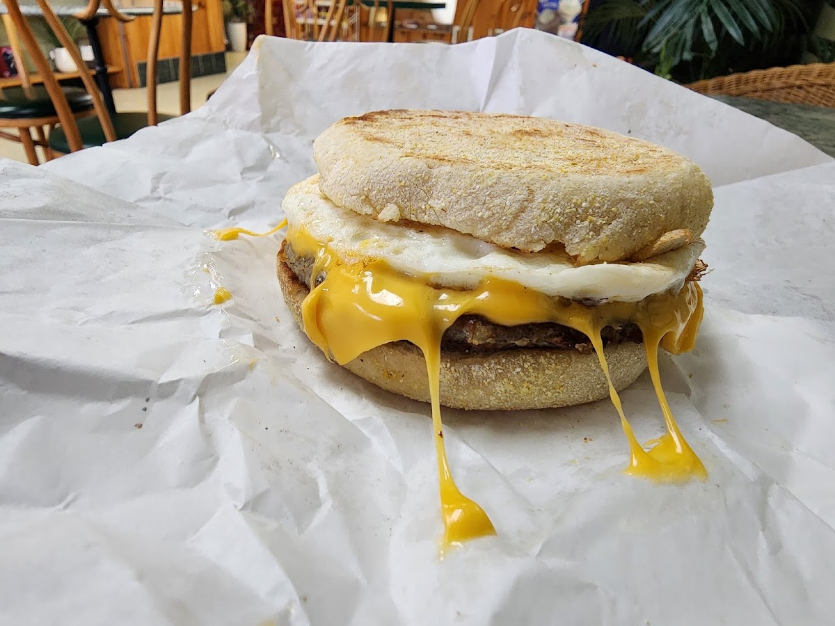 On the menu, you’ll find signature offerings like the "Original" Breakfast Sandwich, featuring succulent bacon, egg, and American cheese piled onto a toasted English muffin for just $4.00. If you're in the mood for something different, consider the Croissant Sandwich served with chips and a soda for only $1.25, or indulge in a Sausage, Egg, and Cheese delight that pairs perfectly with a cup of their rich, bold Americano. For a sweet touch, customers rave about the banana bread and Mexican mocha, both of which have become local favorites.