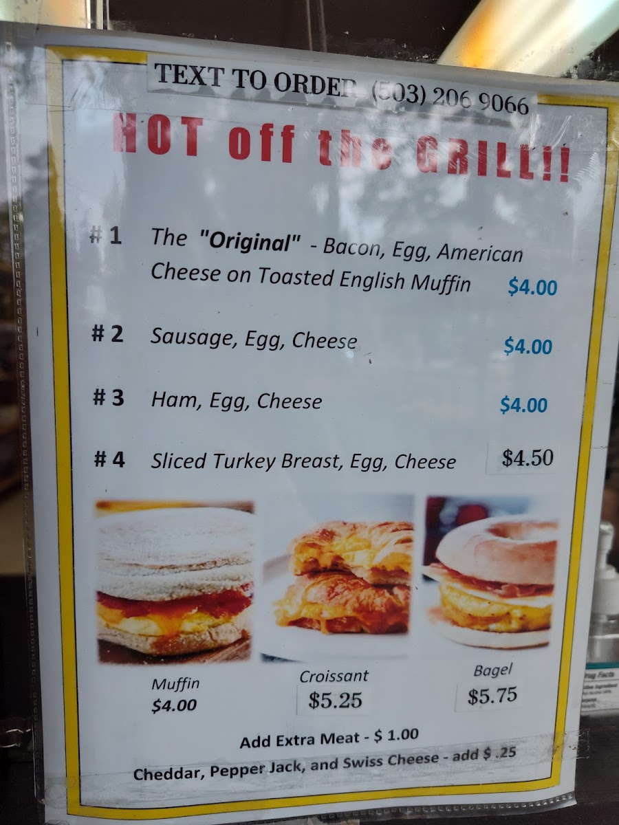 - Breakfast Sensations: Indulge in the signature "Original" Breakfast Sandwich; layers of bacon, egg, and American cheese on a toasted English muffin, all for just $4.00. Other tempting options include sausage, ham, or turkey sandwiches, each crafted for flavor.